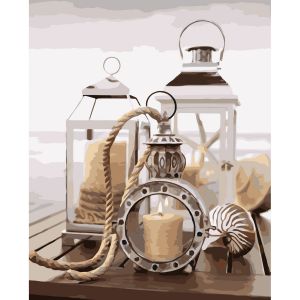 Картина за номерами Strateg ПРЕМІУМ Свічечки і ліхтарі з лаком розміром 40х50 см VA-3649