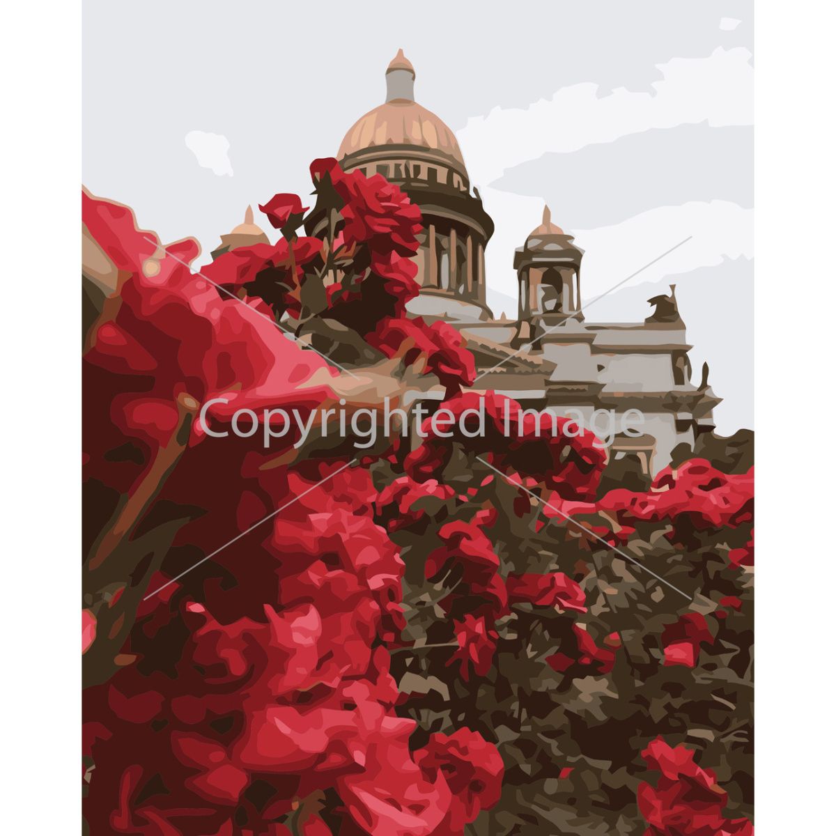 Картина за номерами Strateg ПРЕМІУМ Троянди біля Ісаакіївського собору з лаком розміром 40х50 см VA-3749