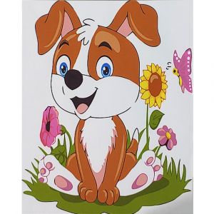 Картина за номерами Strateg ПРЕМІУМ Цуценя у квітах з лаком та з рівнем розміром 30х30 см (ES217)