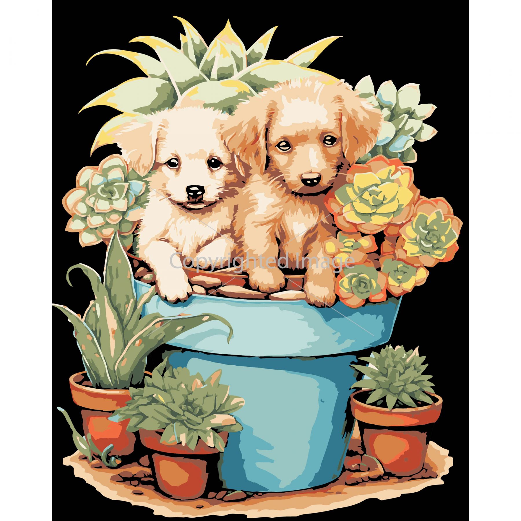 Картина за номерами Strateg ПРЕМІУМ Цуценяти на чорному фоні розміром 40х50 см (AH1192-16)