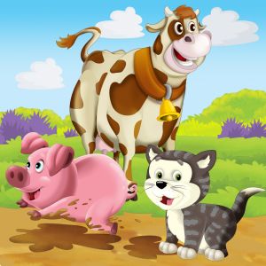 Картина за номерами Strateg ПРЕМІУМ Тварини на прогулянці з лаком та з рівнем розміром 30х30 см (ES162)