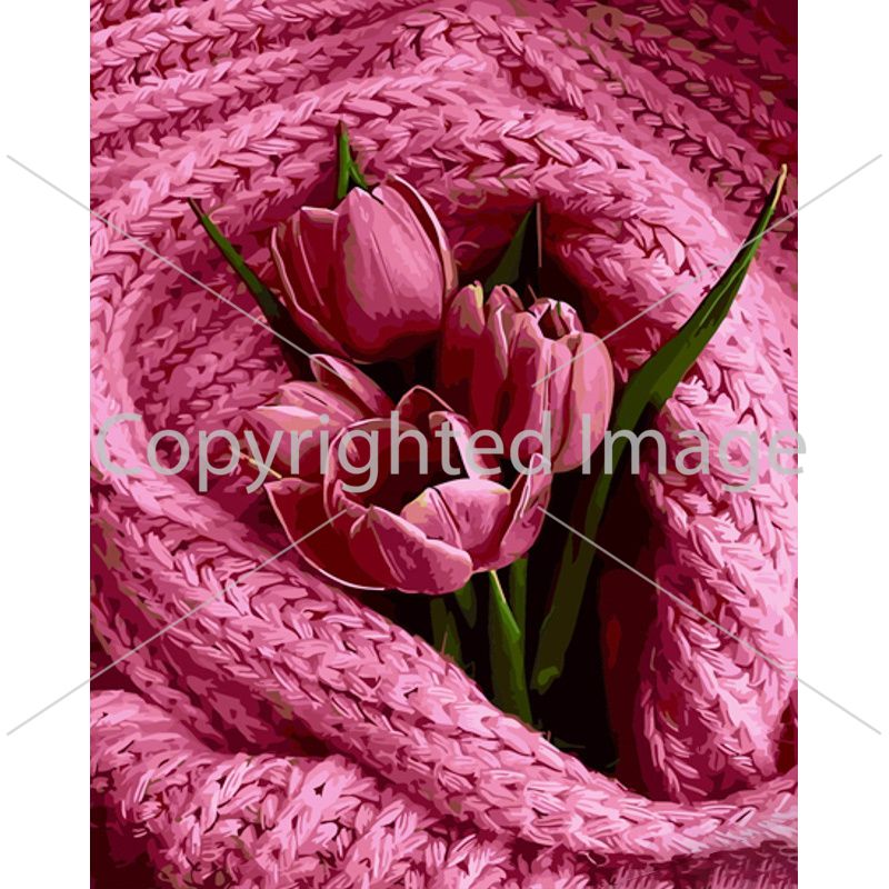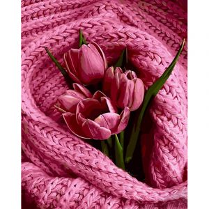 Картина за номерами Strateg ПРЕМІУМ Тюльпани у в'язаній тканині з лаком та з рівнем розміром 40х50 см (GS1508)