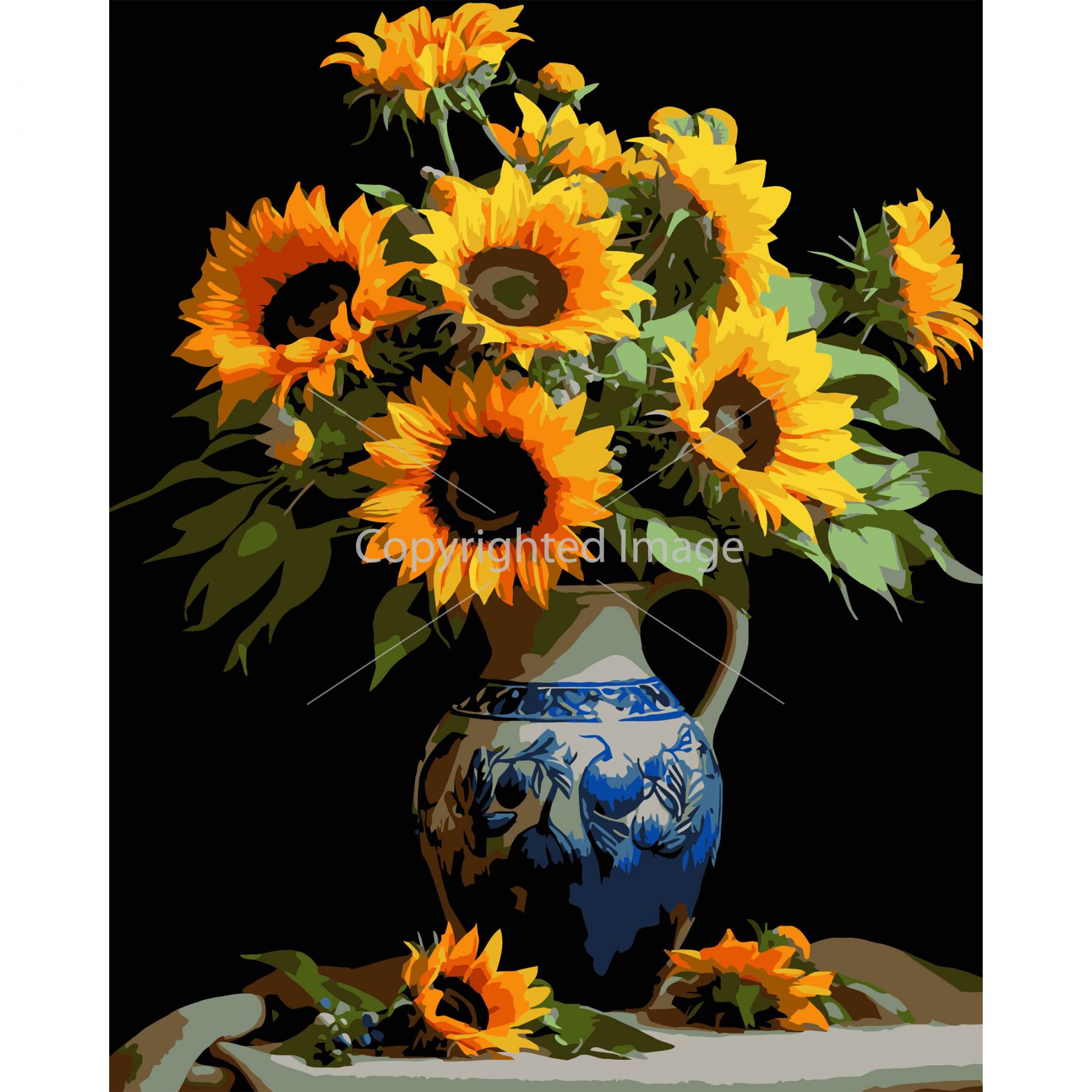 Картина за номерами Strateg ПРЕМІУМ Ваза з соняхами на чорному фоні розміром 40х50 см (AH1174-16)