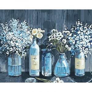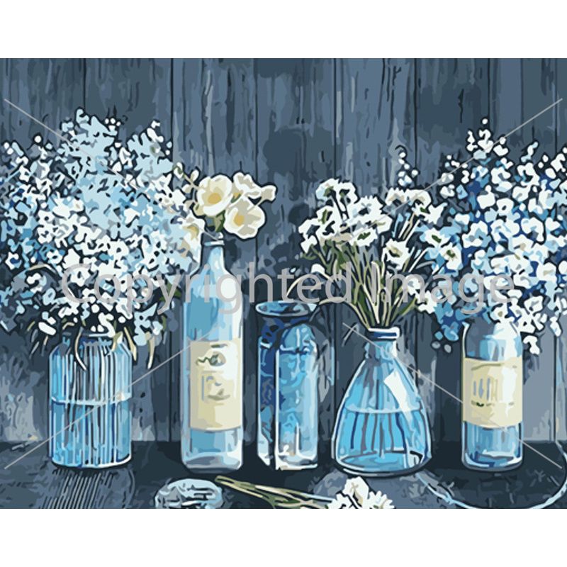 Картина за номерами Strateg ПРЕМІУМ Вази з квітами з лаком та з рівнем розміром 40х50 см (GS1404)