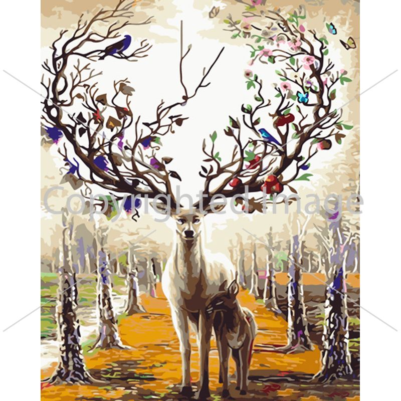 Картина за номерами Strateg ПРЕМІУМ Величні роги оленя з лаком та з рівнем розміром 40х50 см (GS1492)