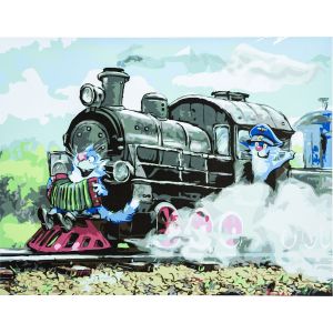 Картина за номерами Strateg ПРЕМІУМ Веселі машиністи з лаком розміром 30х40 см SS-3685