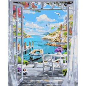Картина за номерами Strateg ПРЕМІУМ Вихід до води з лаком розміром 40х50 см (SY6722)
