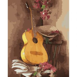 Картина за номерами Strateg ПРЕМІУМ Витончена гітара з лаком та з рівнем розміром 40х50 см (GS1377)