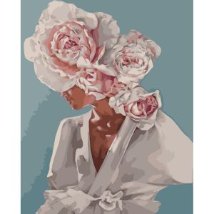 Картина за номерами Strateg ПРЕМІУМ Волосся із квітів з лаком розміром 40х50 см VA-3623