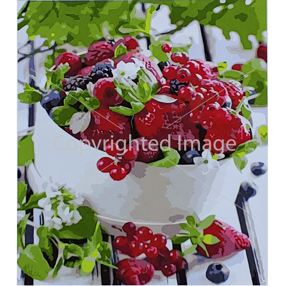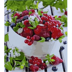 Картина за номерами Strateg ПРЕМІУМ Ягідний сніданок з лаком розміром 30х40 см (SS6487)