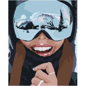 Картина за номерами Strateg ПРЕМІУМ Зима в окулярах з лаком розміром 40х50 см VA-3708