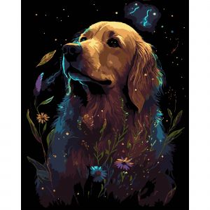 Картина за номерами Strateg ПРЕМІУМ Золотий ретривер на чорному фоні розміром 40х50 см (AH1206-17)