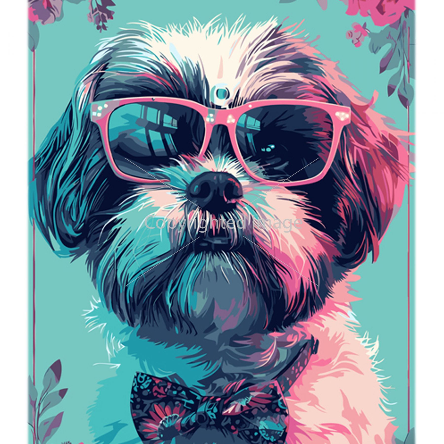 Картина за номерами Strateg Собака в окулярах на кольоровому фоні розміром 40х50 см (MZ023)