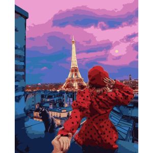 Картина за номерами Захід над Парижем Strateg з лаком розміром 40х50 см (VA-1231)