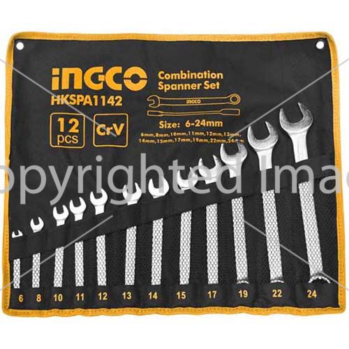 Комплект ключів гайкових комбінованих 6-24 мм 12 шт в чохлі INGCO INDUSTRIAL призначений для проведення ремонтних, складальних і демонтажних робіт з використанням шестигранного кріплення.