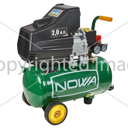 NOWA KBN 220-24 — поршневий компресор із прямим приводом. Апарат належить до середньої за продуктивністю лінійки компресорів Nowa. Електромотор 1,5 кВт забезпечує продуктивність поршневої групи 190 л/хв і гарантує підтримання стабільних обертів у всьому діапазоні робочих тисків.