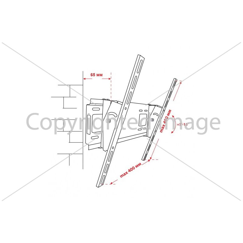 За допомогою цього кронштейна з’являється можливість збільшити кут нахилу телевізора. Кріплення підходить для телевізійних панелей від 32 дюймів до 60 дюймів, що мають висоту від 50 см до 90 см, причому не у всіх телевізорів отвори кріплення знаходяться точно по центру, тому - вибираючи між двома варіантами похилих елементів, Ви зможете підібрати найбільш прийнятний для Вас варіант . Також при зміщеному нахилі можна над кріпильною плитою встановлювати розетки.