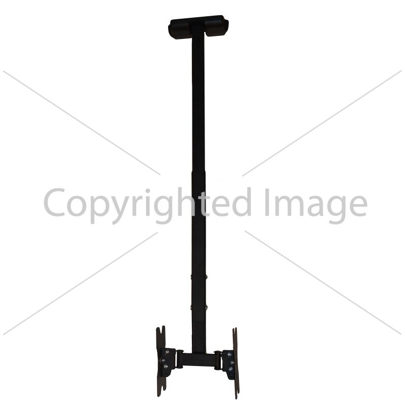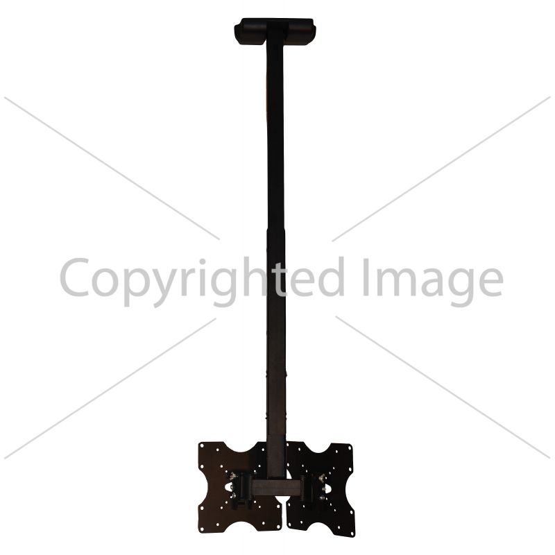 Кронштейн КВАДО K-82 - стельовий кронштейн здвоєний. Призначений для встановлення одночасно двох невеликих та середніх телевізорів. Оснащений похилими та поворотними механізмами. Довжина штанги регулюється. Кріплення на стелі ховається за декоративною кришкою. Знімна панель кріплення для легкої установки.