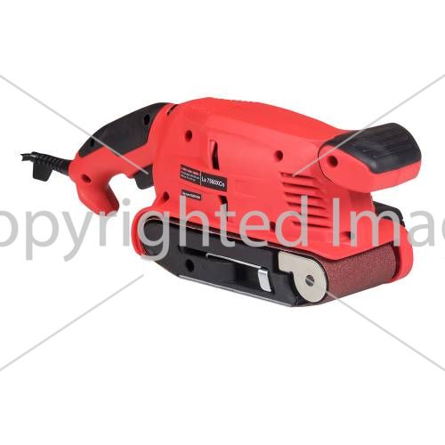 Корпус стрічкової шліфувальної машини Vitals Ls 7560XCs виготовлений з високоякісного ударостійкого пластику. Електродвигун має поперечне розташування осі обертання ротора, з'єднаний з ведучим роликом ремінною передачею. Це спрощує обслуговування та підвищує надійність конструкції.