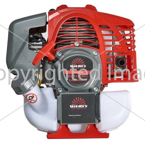 Двотактний двигун мотокоси Vitals Professional BK 4123avs Launcher II виготовлений з високоякісного комплектування. Розвиває до 10000 обертів за хвилину і при порівняно невеликому об’ємі (41 см3) має досить пристойну потужність — 1700 Вт (2,3 к. с.) Однаково добре приводить в дію міцну (товщиною 2,4 мм) ліску, 3-зубчастий ніж, 40-зубчастий сталевий диск.