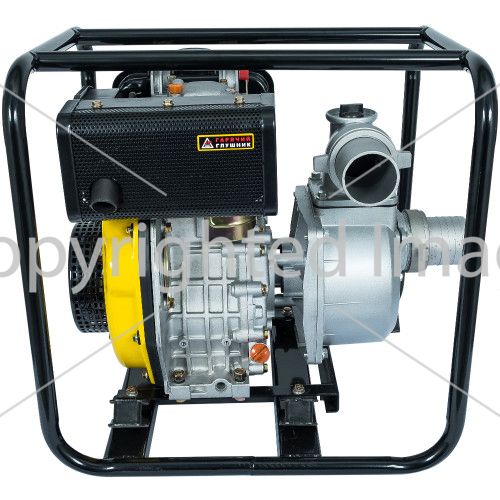Конструктивно виріб складається з 4-тактного дизельного двигуна й самовсмоктувального відцентрового водяного насоса, які змонтовані на міцній металевій рамі. Для запуску двигуна мотопомпи використовується ручний стартер. Ефективне повітряне охолодження двигуна виключає його перегрівання навіть в умовах інтенсивного використання.
