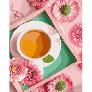 Набір для розпису по номерах Чаювання в рожевих відтінках Strateg розміром 40х50 см (GS1384)
