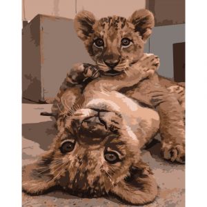 Картина за номерами Strateg ПРЕМІУМ Діти-левенята розміром 40х50 см (DY250)