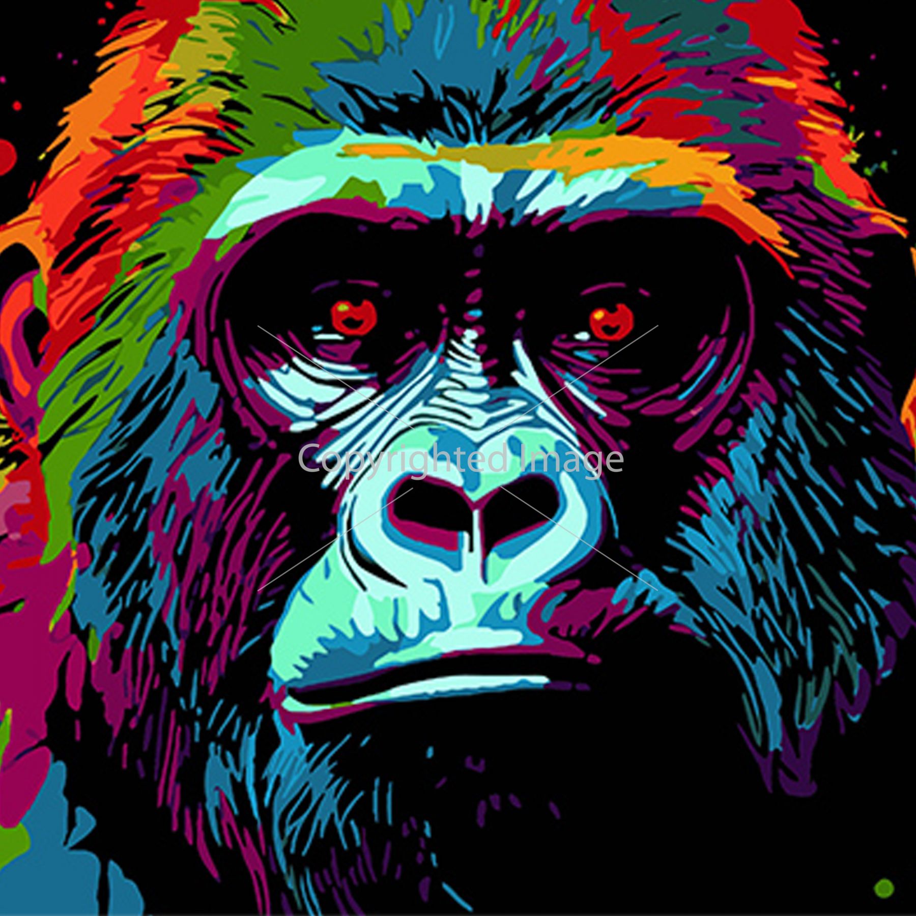 Набір для розпису по номерах Горила у яскравих тонах Strateg на чорному фоні розміром 40х40 см (AV40