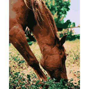 Картина за номерами Strateg ПРЕМІУМ Кінь у лузі розміром 40х50 см (DY108)