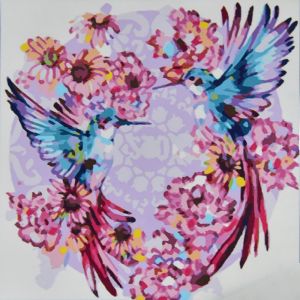 Набір для розпису по номерах Колібрі в квітах Strateg розміром 50х50 см (AA009)