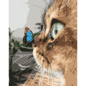 Картина за номерами Strateg ПРЕМІУМ Котик з метеликом розміром 40х50 см (DY021)