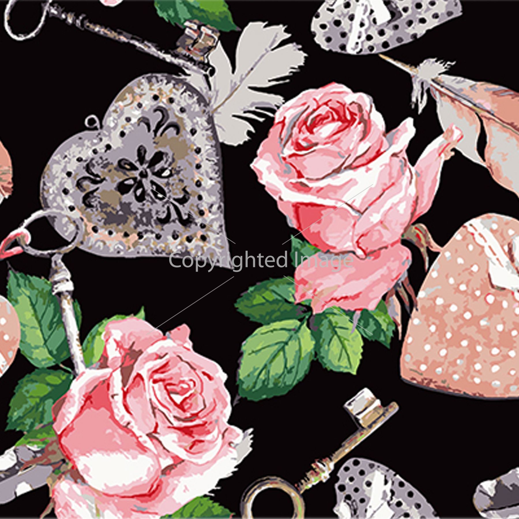 Набір для розпису по номерах Квіткове серце рожевих троянд Strateg на чорному фоні розміром 40х40 см