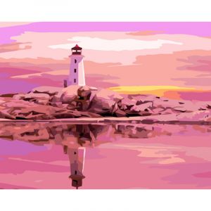 Картина за номерами Strateg ПРЕМІУМ Маяк на заході сонця розміром 40х50 см (GS830)