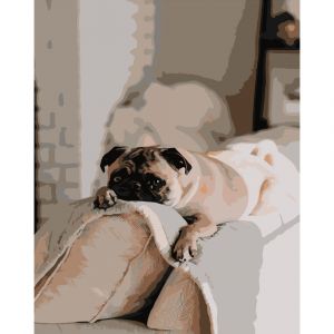 Картина за номерами Strateg ПРЕМІУМ Мопсик на відпочинку розміром 40х50 см (DY099)