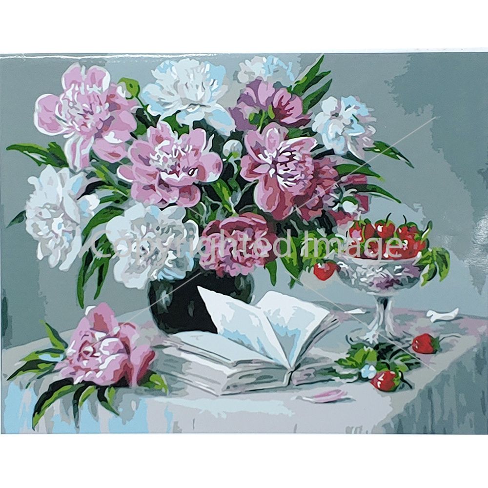 Картина за номерами Strateg ПРЕМІУМ Піони та полуниці розміром 40х50 см (GS024)