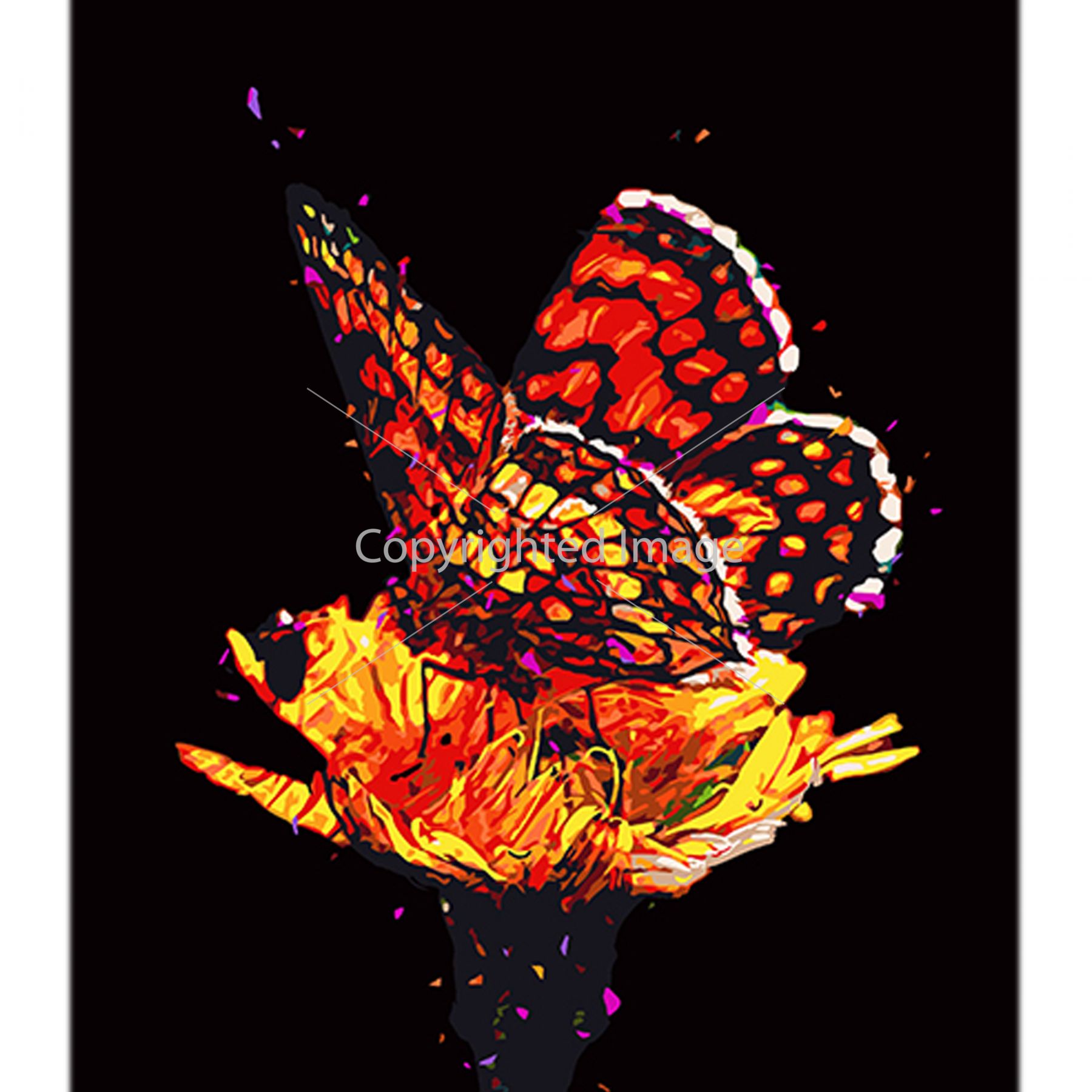 Картина за номерами Strateg Вогняний метелик на цвіті на чорному фоні розміром 40х50 см (AH1098)Картини за номерами від українського виробника Strateg поєднують творчість з грою. Вони розвивають фантазію, покращують пам'ять і дрібну моторику. А процес малювання знижує тривогу і знімає стрес.