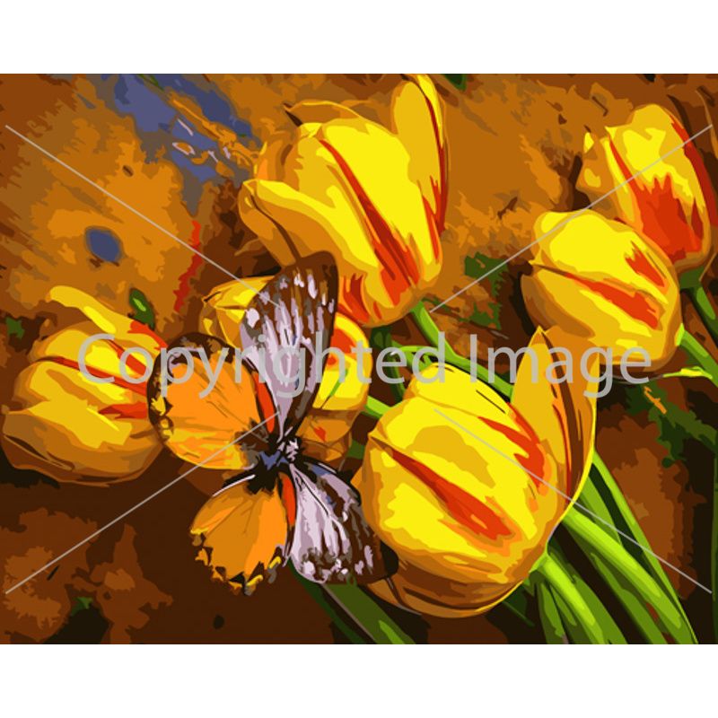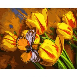 Набір для розпису по номерах Жовті тюльпани з метеликом Strateg розміром 40х50 см (GS1019)