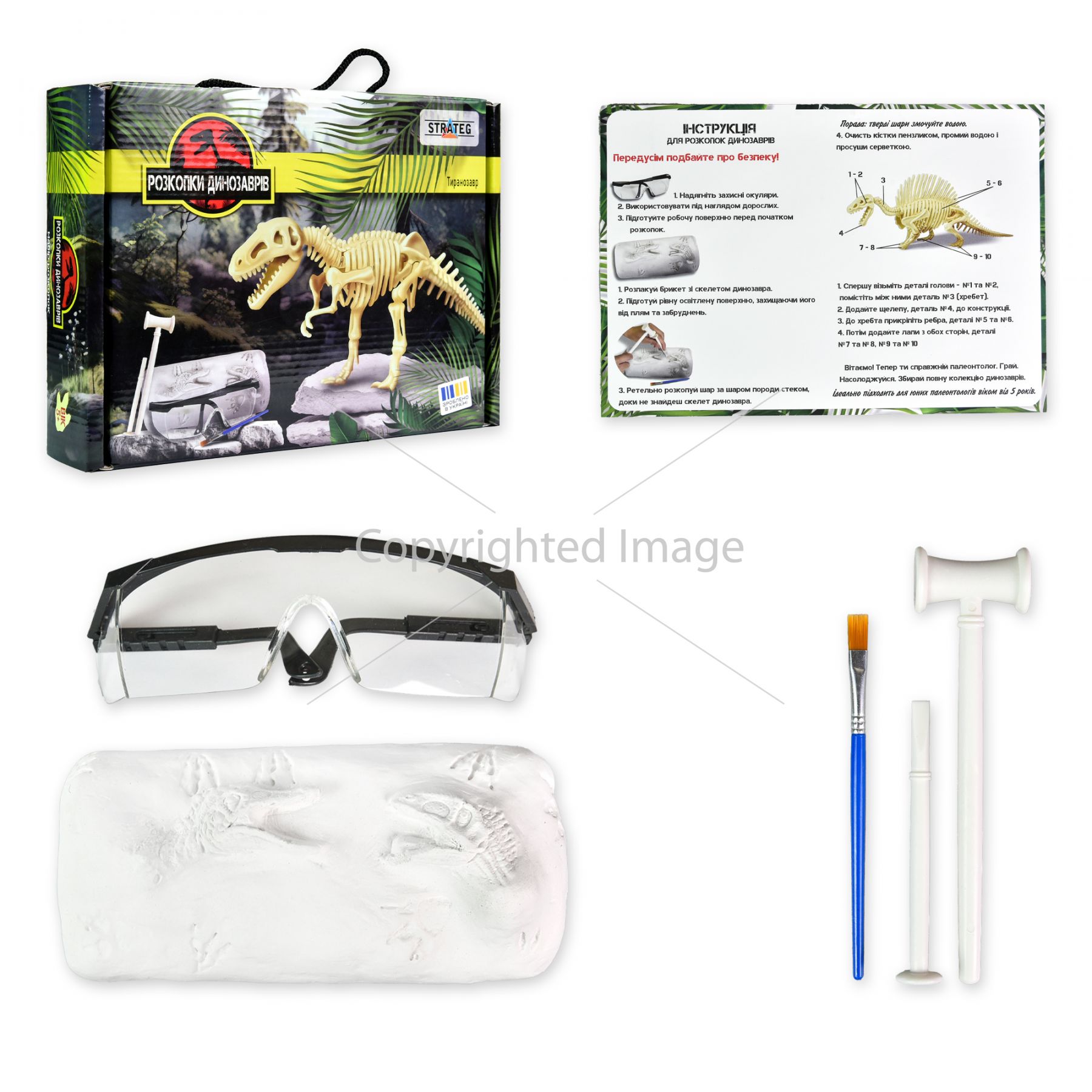 Набір для творчості "Розкопки динозавра. Тиранозавр" — цікавий та захопливий набір для допитливих дослідників. У коробці ви знайдете необхідні інструменти, окляри для захисту, гіпсовий брикет зі скелетом мамонта та пояснення, як саме діяти. Може здатися, що археологи вже знайшли всі скам'янілості, але скажемо по секрету, що ми дещо зберегли. Нумо до нових відкриттів!
