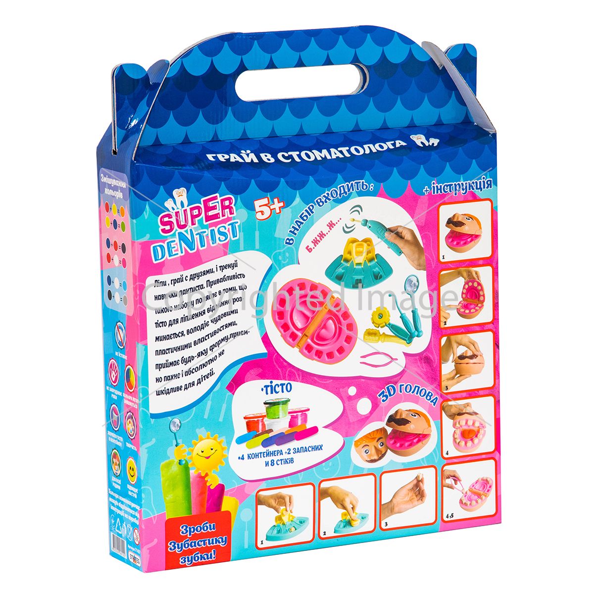 Відчути себе справжнім лікарем-стоматологом допоможе набір «Містер тісто - Super Dentist» (Strateg 71407). У ньому є все необхідне для маленького медика – від медичних інструментів та станка для протезування до працюючої бормашинки. За допомогою великої кількості форм та приладдя дитина зможе провести огляд, лікування, видалення та протезування в зубній порожнині. І навіть є пацієнт - об'ємна голова-манекен з ротом, що відкривається! Малюку потрібно за допомогою форм виліпити зуби для манекена зі спеціального тіста. Тісто дуже пластичне, різні кольори легко змішуються, воно не забруднює руки і може набувати будь-якої форми. ♦ Вік: 5+ ♦ Комплектація: 4 ємності з тістом по 100 гр., 8 паличок тіста по 20 гр., 2 ємності для зберігання, станок для тіста, 3D манекен, стоматологічні інструменти. ♦ Матеріал: пластик, тісто. ♦ Живлення бормашини: 1 батарейка АА (немає в комплекті). Мова: українська.