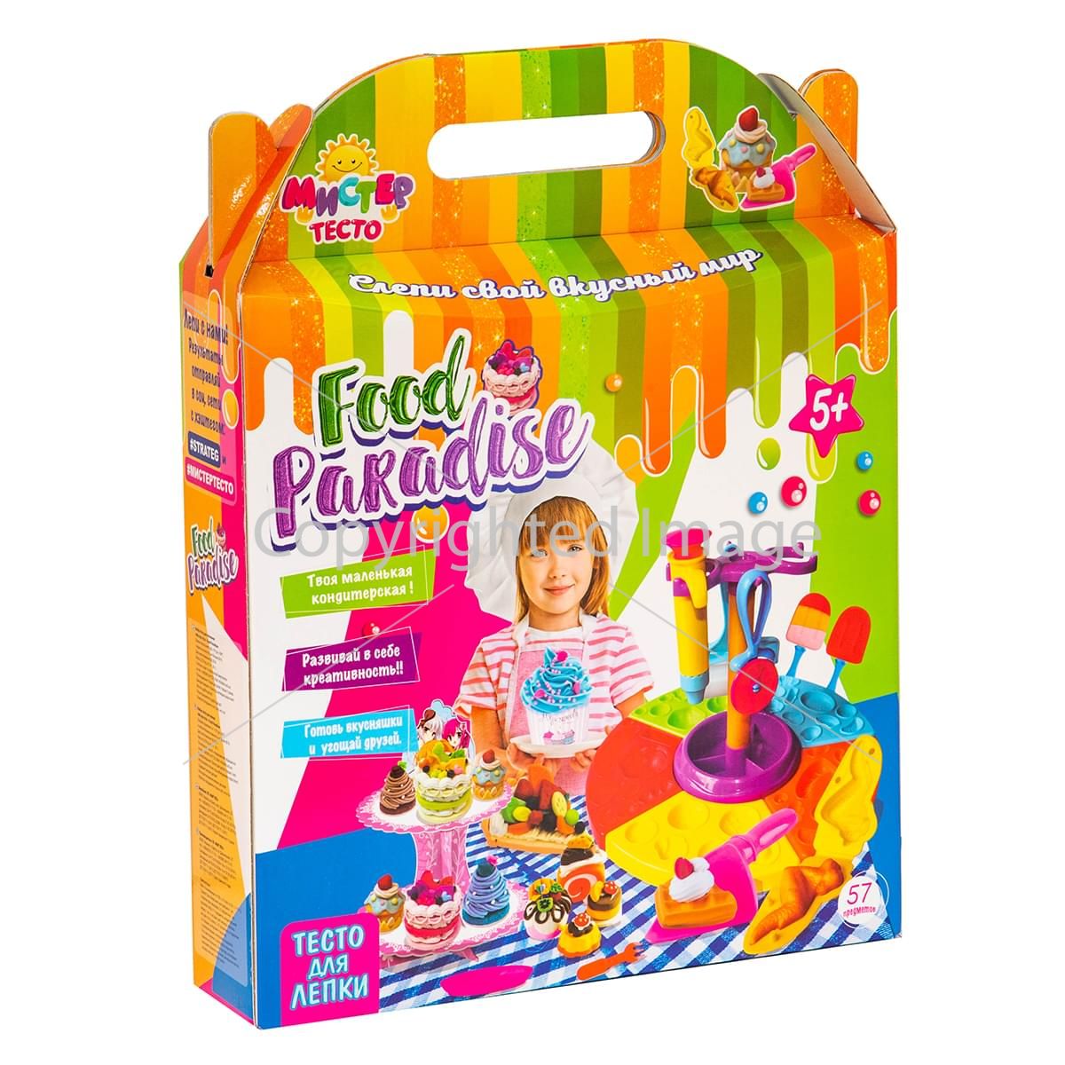Солодкі пончики, морозиво, вафлі і печиво - хто з дітей не любить солодощі? Великий набір «Містер Тісто Food paradise» подарує дитині можливість відчути себе кондитером і майстром десертів, який створює солодкі шедеври на маленькій кухоньці! Це кондитерська в мініатюрі - в наборі є кондитерський шприц, скалка, кухонний набір, коробочки для готової продукції і підставка для кексів. А матеріалом, з якого дитина приготує свій солодкий шедевр, стане м'яке тісто. Воно відмінно ліпиться, не липне і не забруднює ручки. Тісто з блискітками приймає будь-яку форму, дозволить малюкові проявити найсміливіші фантазії!