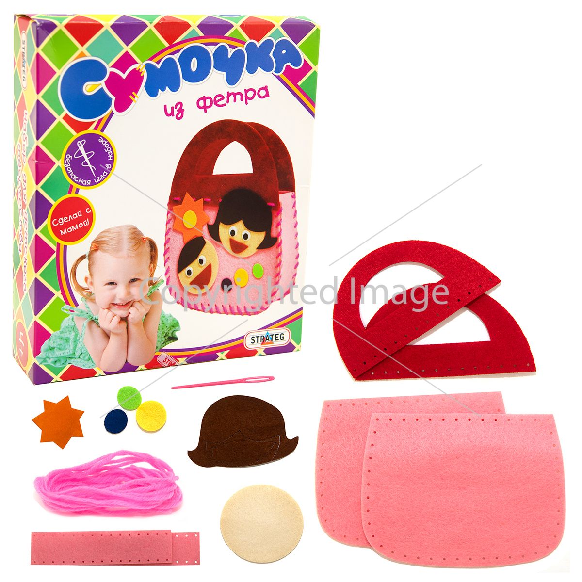 Виготовлення сумочки доступне будь-якій дитині, а сам процес творчості вимагатиме від дитини уважності, вміння розрізняти та комбінувати кольори, привчить до акуратності та бажання досягти поставленої мети. В комплект входить спеціальна безпечна голка та оригінальна нитка.