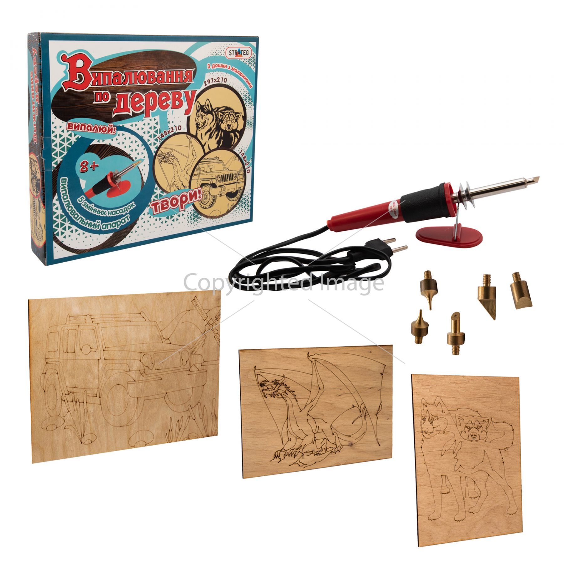 Випалювання по дереву - це незвичайний вид мистецтва, що вимагає акуратності та уважності, точності рухів та терпіння. Однак прикладені зусилля приносять свої плоди, візерунки, отримані за допомогою апарату для випалювання, виглядають особливо дивовижними та несхожими ні на що інше. Компанія Strateg створює унікальні набори для випалювання по дереву (846), які допоможуть освоїти це непросте ремесло або відточити вже набуті раніше навички. У наборі три дошки різного розміру з нанесеним на них малюнком, апарат для випалювання та п'ять змінних насадок. Насадки дозволяють зробити задуманий візерунок надзвичайно цікавим та оригінальним завдяки різноманітності ліній. ♦ Вік: 8+ ♦ Розмір упаковки: 33х27.5х5.5см ♦ У комплекті: апарат для випалювання, насадки 5 шт., 1 дощечка 39.7х21 см, 2 дощечки по 21х14.8 см. ♦ Вага: 300 (+-20 г) Мова: українська.