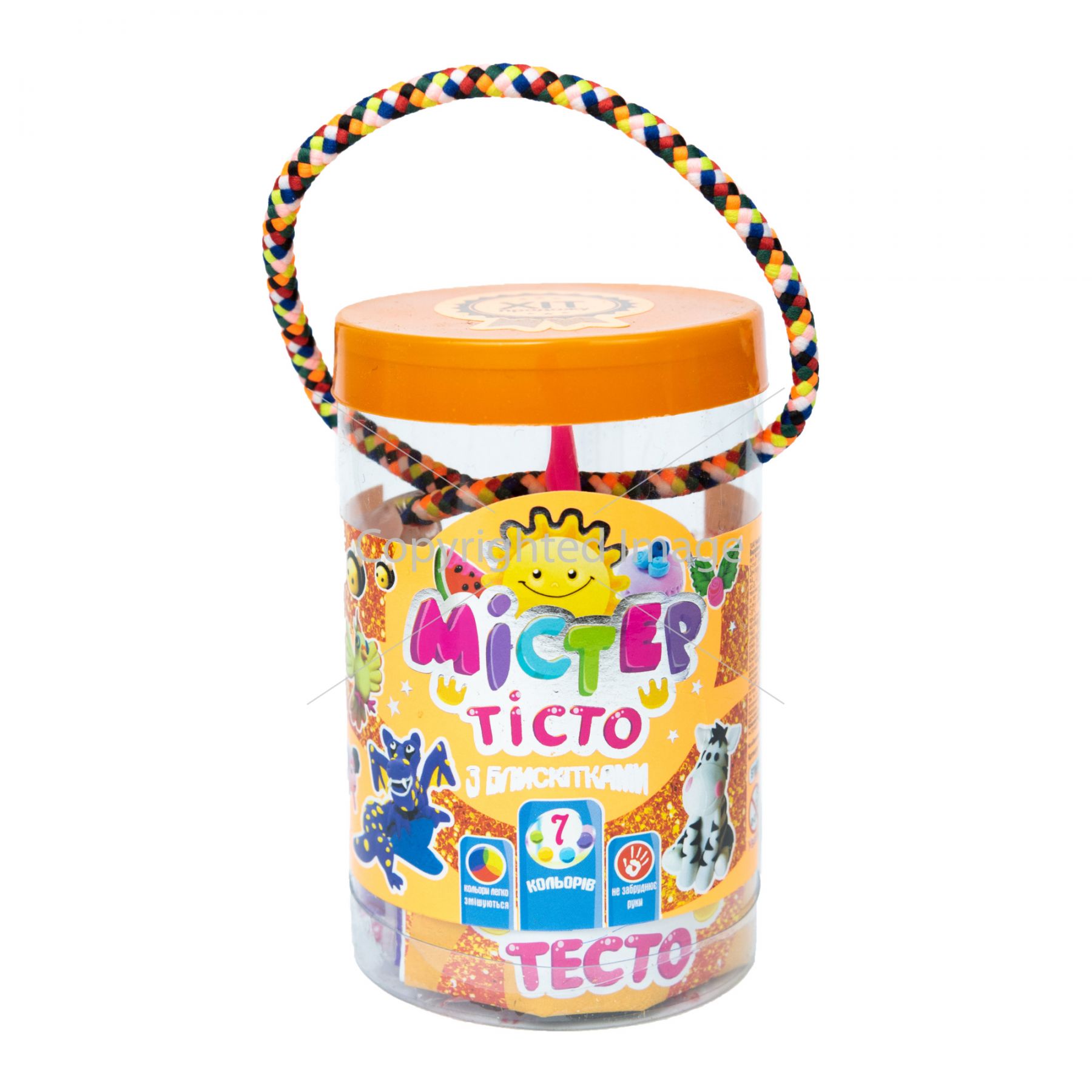 Набір маси для ліплення Strateg Містер тісто 7 кольорів з блискітками у блістері українською мовою (71807)