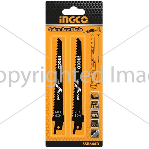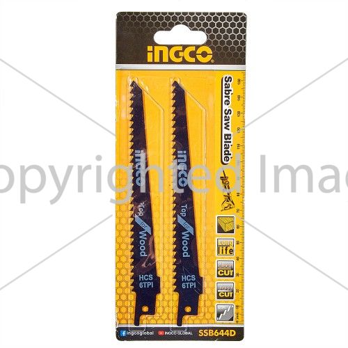 Набір пильних полотен для шабельної пили 150х19х1.25 мм 6TPI — HCS INGCO складається з двох пилок і призначений для швидкого розпилу дерева і пластика діаметром до 100 мм.
