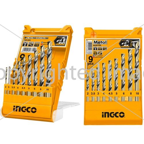 Набір свердел по металу 9 шт 2-10 мм INGCO виконаний зі швидкорізальної сталі (HSS).