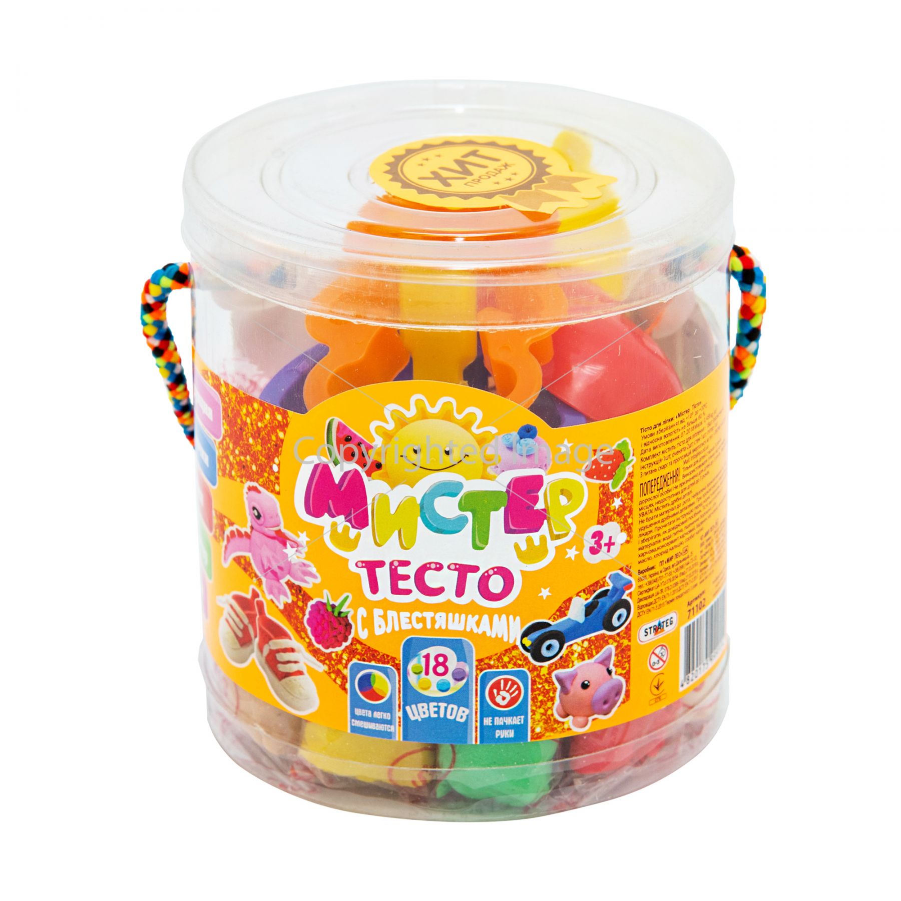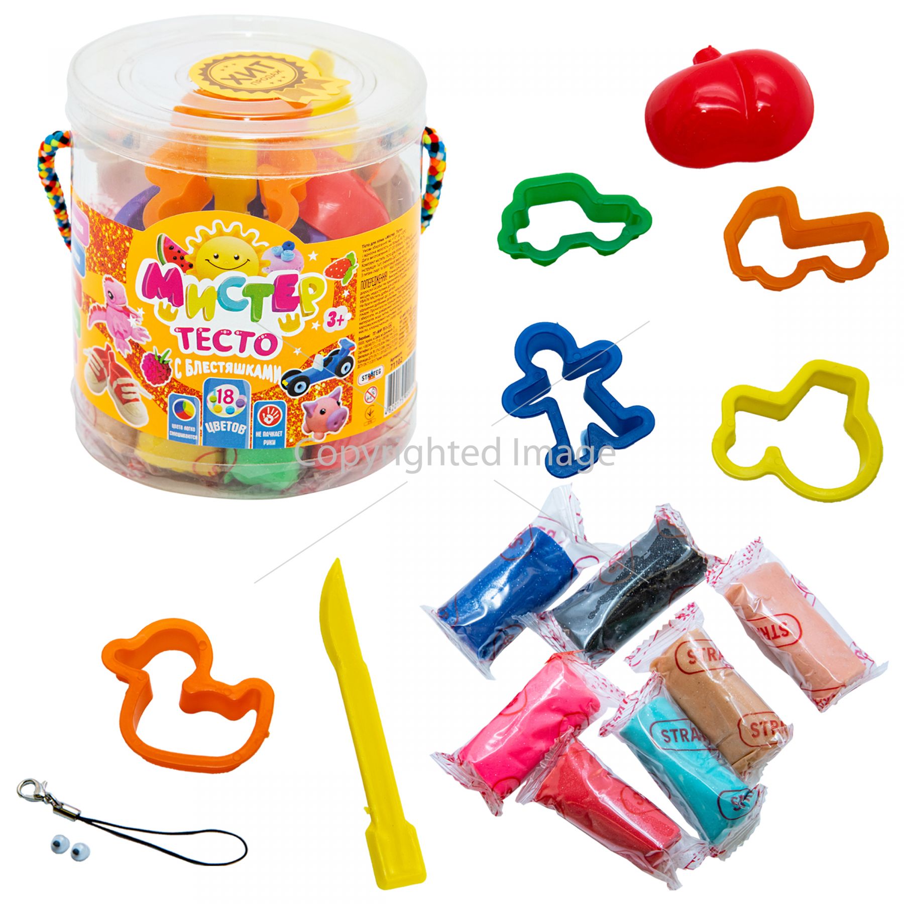 Набір тіста для ліпки Strateg Містер тісто з блискітками 18 кольорів (71102)