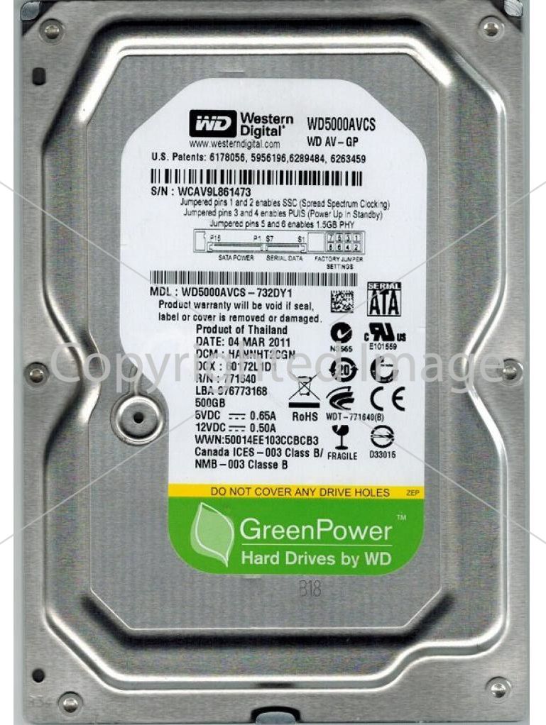 Накопичувач HDD SATA 500GB WD AV-GP 5400rpm 16MB (WD5000AVCS) Refurbished