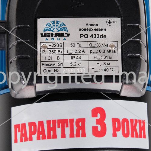 Усі технічні показники насоса Vitals Aqua PQ 433de характеризуються достовірністю та підтверджені випробуваннями. Гарантія на насос Vitals Aqua PQ 433de — 36 місяців.