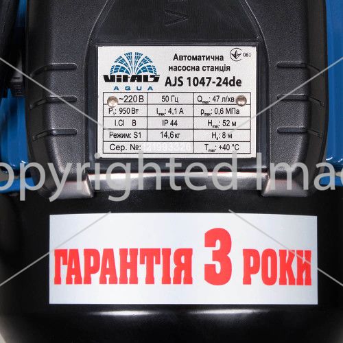 Усі технічні показники насосної станції Vitals Aqua AJS 1047-24de характеризуються достовірністю та підтверджені випробуваннями. На насосну станцію встановлена гарантія 36 місяців.