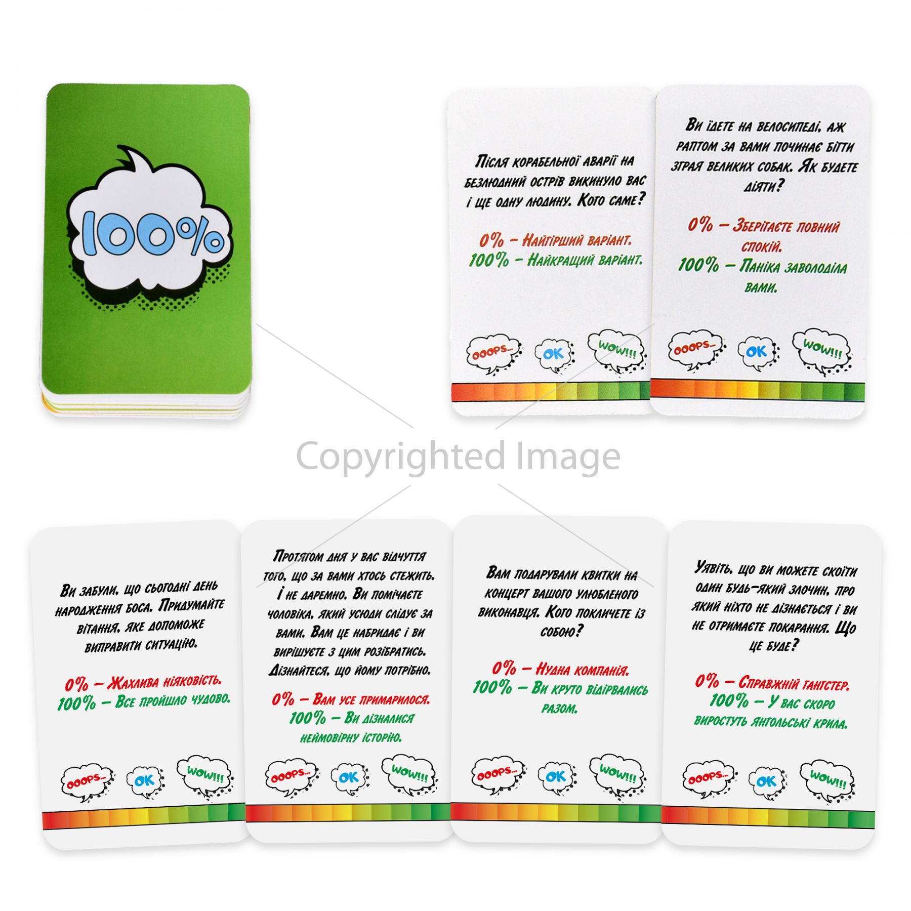 У кожному раунді гравці отримують картки з відсотками від "0%" до "100%". Зачитується питання, після чого кожен з гравців має придумати таку відповідь, яка б відповідала його картці відсотків.